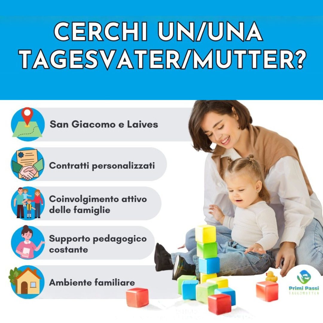 PRIMI PASSI opera da anni nel settore dell'assistenza all'infanzia, con oltre 30 collaboratrici (COLLABORATORI, COORDINATORI, ASSISTENTI SOCIALI E TAGESMUTTER), una struttura ricettiva in viale Druso, servizi di Tagesmutter e una microstruttura aziendale attiva sul territorio provinciale.